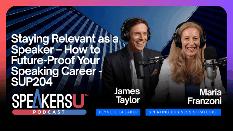 Books for Speakers – Should Every Speaker Write a Book? – SUP207 Listen Now Podcast Available On About The Show In this episode of the SpeakersU Podcast, James Taylor and Maria Franzoni dive into one of the biggest decisions every professional speaker faces — whether or not to write a